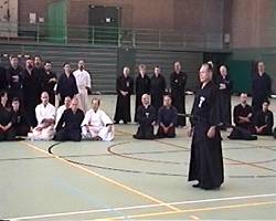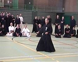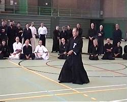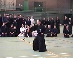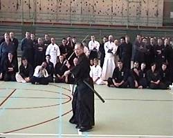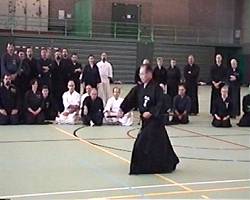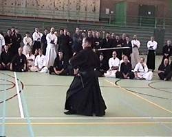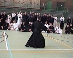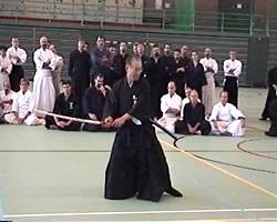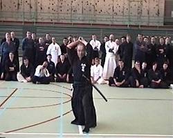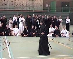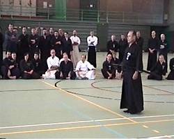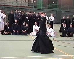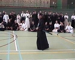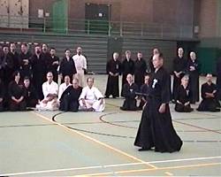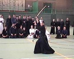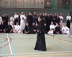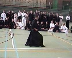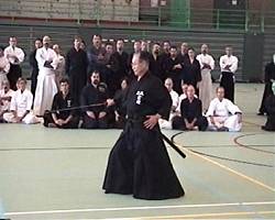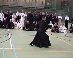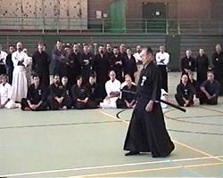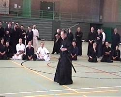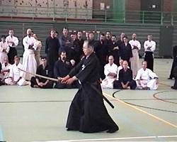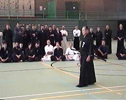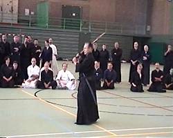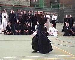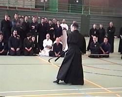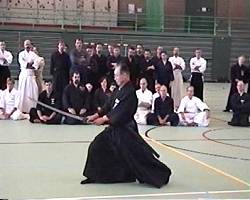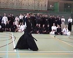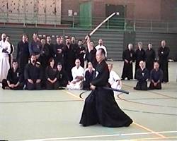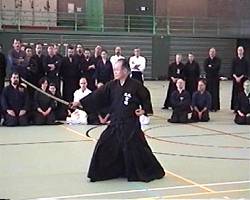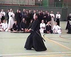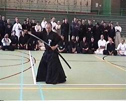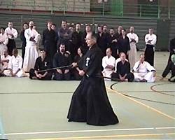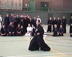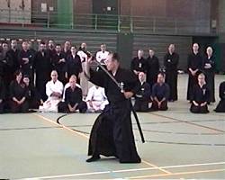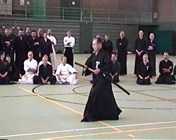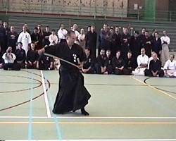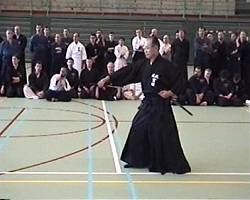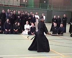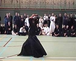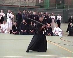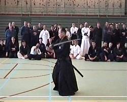 One enemy approaches from the front. Cut in the left side and right shoulder. The sword not too much to the side.